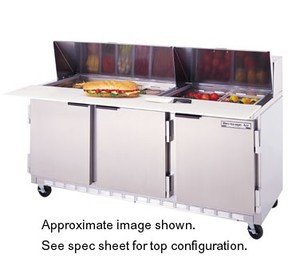 Elite series, sandwich top ref frigerated counter, three-sect ion, 72" w, (3) doors, s/s top with 30 pan openings, door th ermometer, s/s exterior, anodi 888685