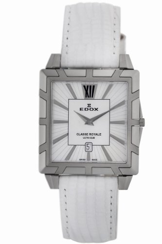 This Edox Classe Royale watch is a beautiful Swiss timepiece. The white design dial with silver indices is protected by a sapphire anti-reflective crystal. The white leather Swiss made strap closes with a buckle clasp. You can be sure to awe the audience with this exquisite watch.